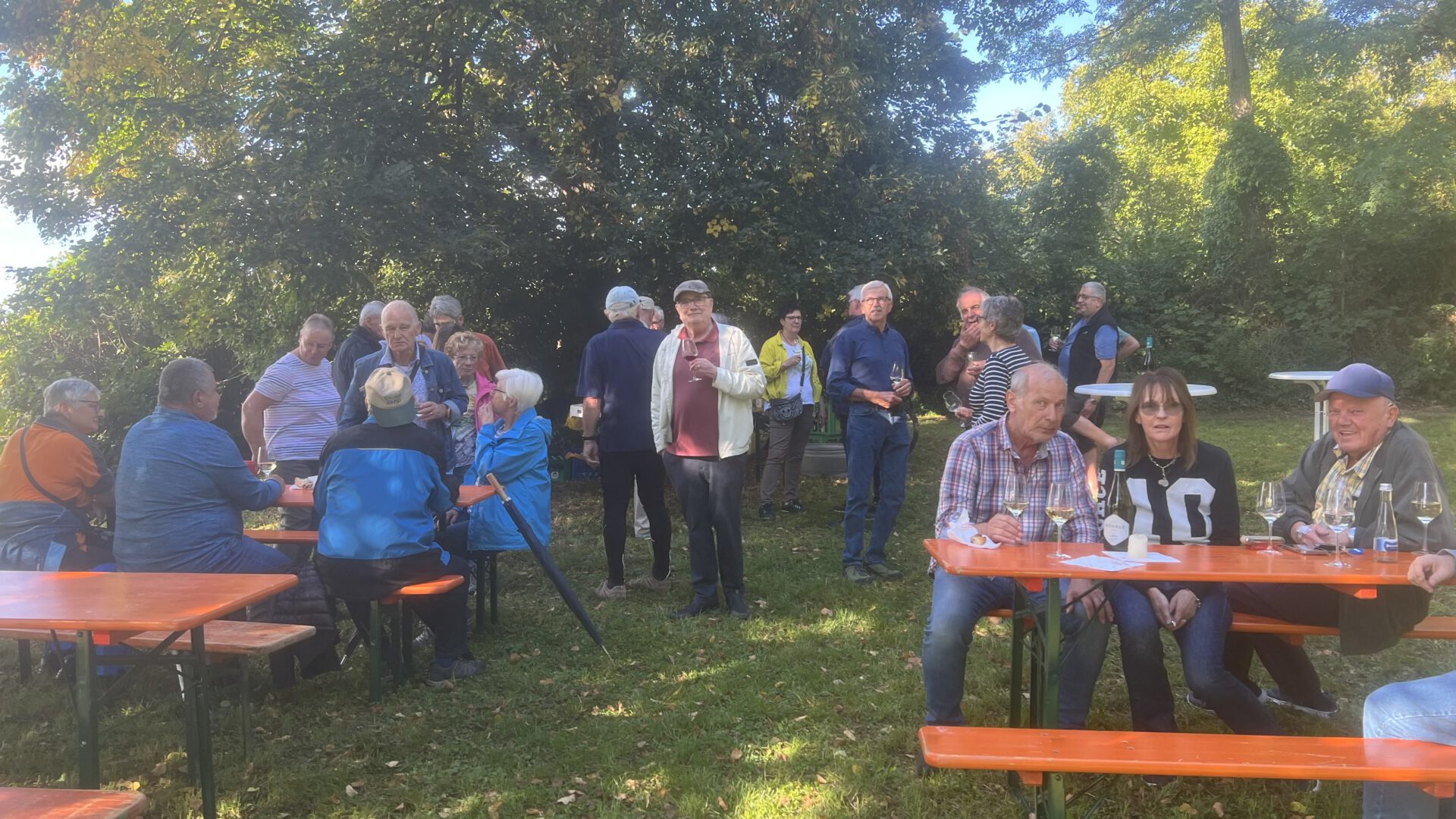 Der 5. September begann in Dinglingen trüb und regnerisch. Doch pünktlich zum Start unseres Festes am Striegel, dem Kriegsdenkmal in Lahr-Dinglingen, riss der Himmel auf – und strahlender Sonnenschein begrüßte gegen 17:00 Uhr die rund 50 Gäste.